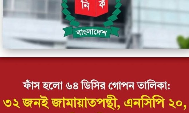 ফাঁস হওয়া নথিতে ৬৪ ডিসির রাজনৈতিক পরিচয়: ‘নিরপেক্ষ’ প্রশাসনে নির্লজ্জ দলীয়করণ সামনে জাতীয় নির্বাচন, অথচ বিস্তারিত ...